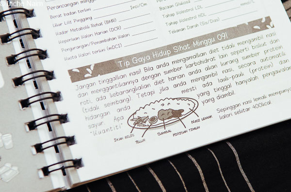 - Planner harian (macam diari harian kita, tapi yang ni khas untuk diet). Ia akan membantu kita membentuk habit dan kekal di landasan yang betul.